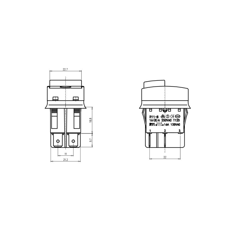 16 (8) A 250VAC T125 1E4